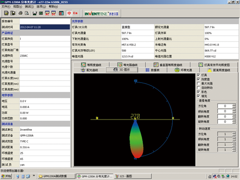 >自動(dòng)測(cè)定光束角:常用的半強(qiáng)度角以及可以滿足特殊要求的1/4光強(qiáng)度角和3/4光強(qiáng)度角和1/10光強(qiáng)度角